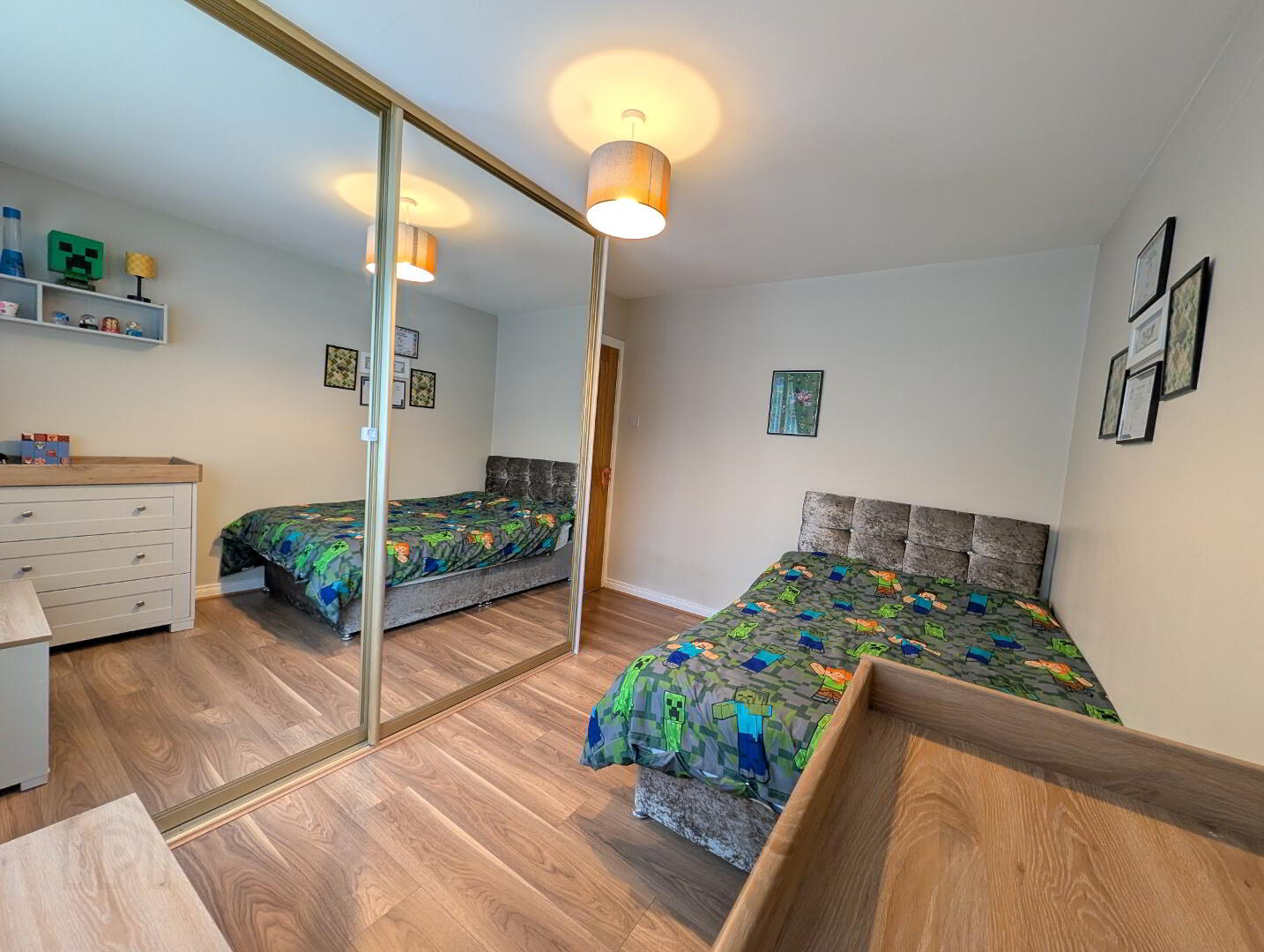 12’3” x 9’3” (3.73m x 2.82m at widest) Wooden effect laminated floor, integrated mirror robes, TV point, rear facing