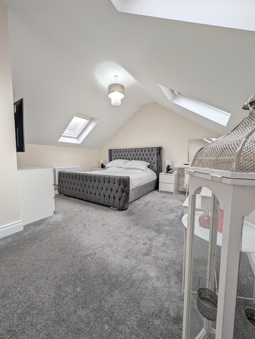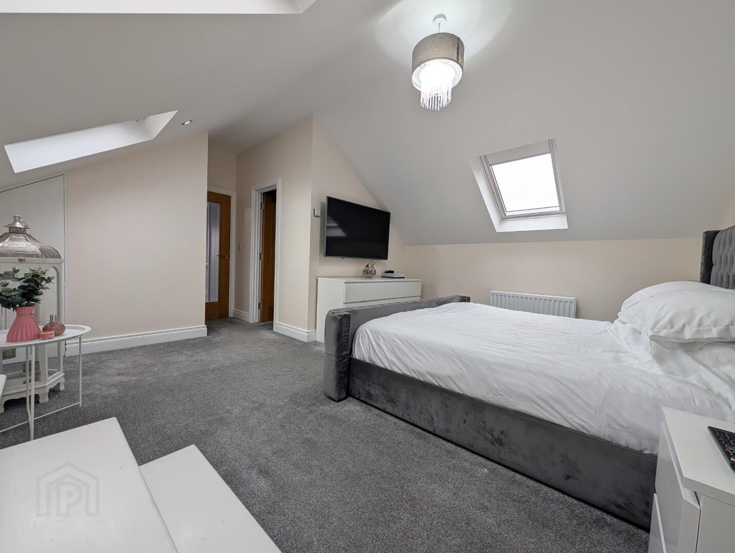 17' 9" x 14' 2" (5.42m x 4.32m at widest) Solid oak door with clear glass panel maximising natural light, walk-in wardrobe/changing room (shelved and railed throughout), Carpet, TV point, Velux window x 3