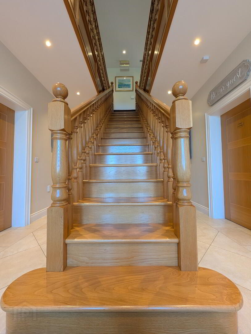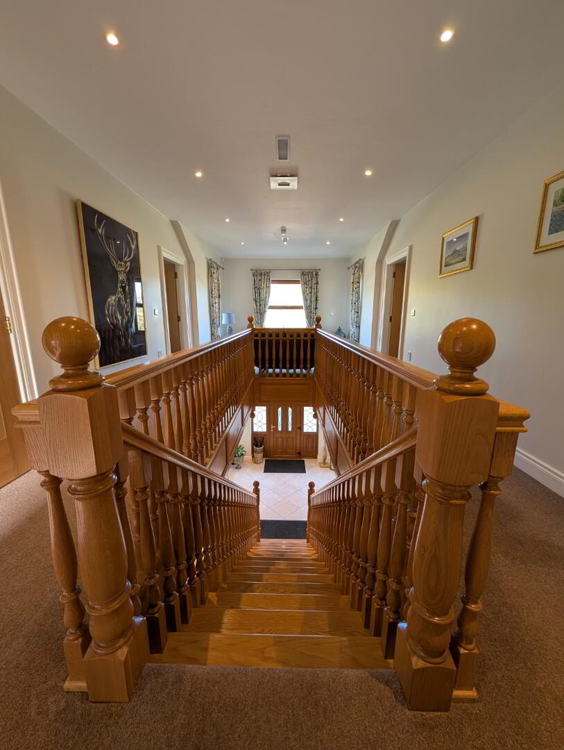 Accommodation comprises of breath-taking grand hallway upon entering and leads off to family room, lounge, dining room, sunroom, kitchen with snug, utility and ‘wet room’ style bathroom on the ground floor. First floor offers seven bedrooms – four of which benefit en-suite facilities, master bedroom with walk-in dressing room and separate lounge area, a family bathroom and two walk-in linen cupboards.