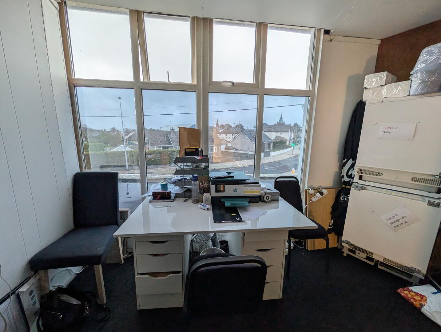 The unit includes seating, counter space, kitchen, store, WC and upstairs office with additional storage.
